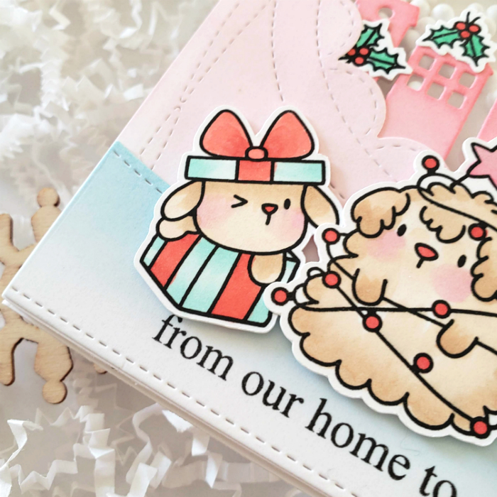 I used the "Yappy Woofmas", "Polar Pals" and "Sentiments from a Yeti" to create my card. The dog images are super adorable! I also used the "Cloud Nine" and "Columbus Circle" dies to create my shaker card.